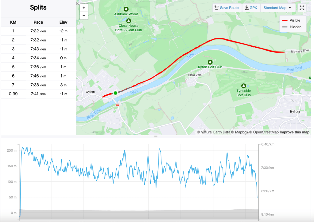 I now find myself thinking more positively about running in general and that I can truly “run” the whole of the great north run distance at 21km. My next weeks target should be 9.5km if I stick to the plan of adding 1km each week however that is so close to 10km that it seems almost natural to push myself towards hitting the higher number.